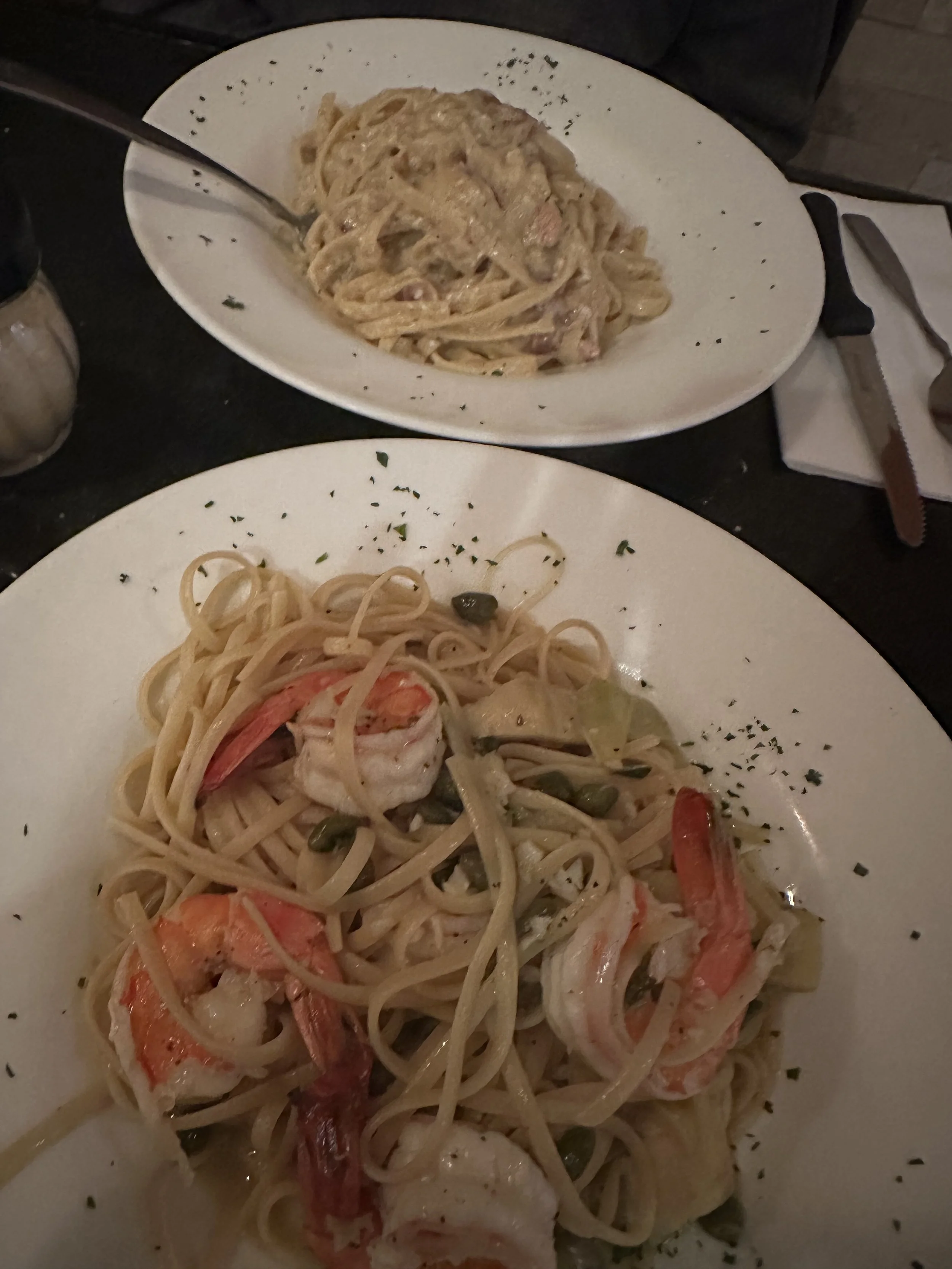 Gillian and I really liked the olive oil with the bread it was fire! The shrimp scampi was a solid 8/10 it was pretty good! Unfortunately we did not enjoy the Faggioli as it had a dense bean taste to it. Fortunately Gillian really enjoyed the Carbonara she gave it a solid 8/10!